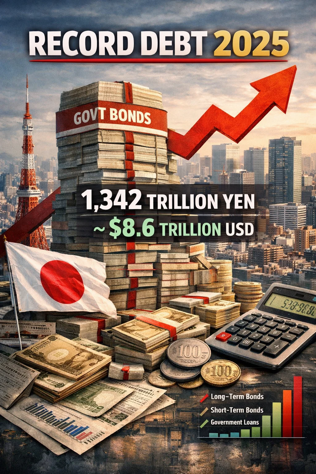 Il Giappone chiude il 2025 con un nuovo massimo storico del debito pubblico: 1.342 trilioni di yen, in aumento di oltre 24 trilioni rispetto all’anno precedente. A pesare sono soprattutto le emissioni di titoli di Stato a lungo termine, che rappresentano la parte più consistente dell’indebitamento.
